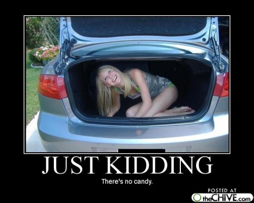Locked in trunk, no candy, still laughing…