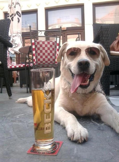 Sidewalk cafe, sun glasses and Beer