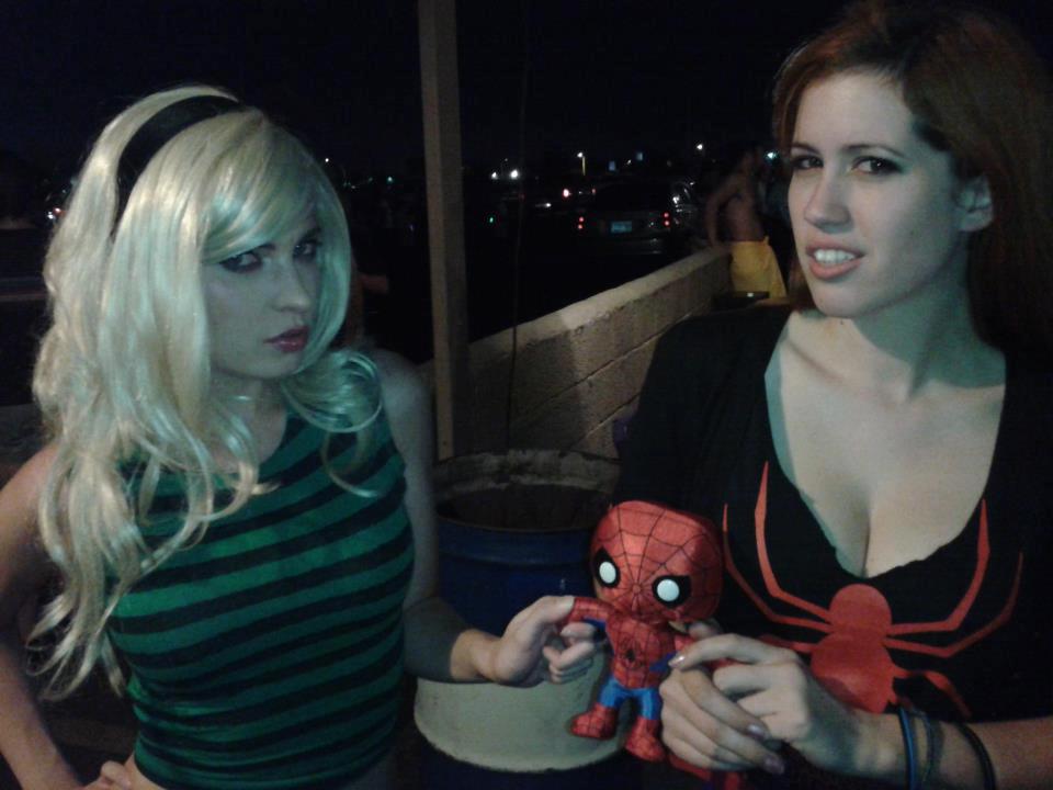 With friend Katy Mor, Spideys two love interests fight over his effigy