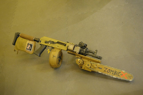 Nice round can of ammo, chainsaw for upclose work