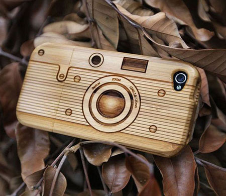 Wood carved camera for I-phone