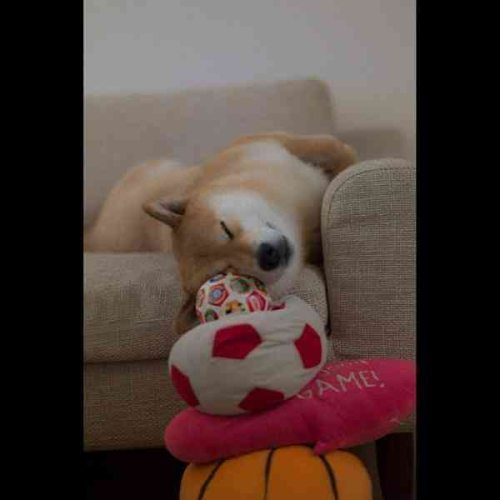 Toys piled for pillows