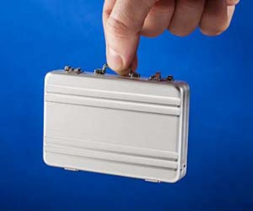 A business card holder shaped like a briefcase