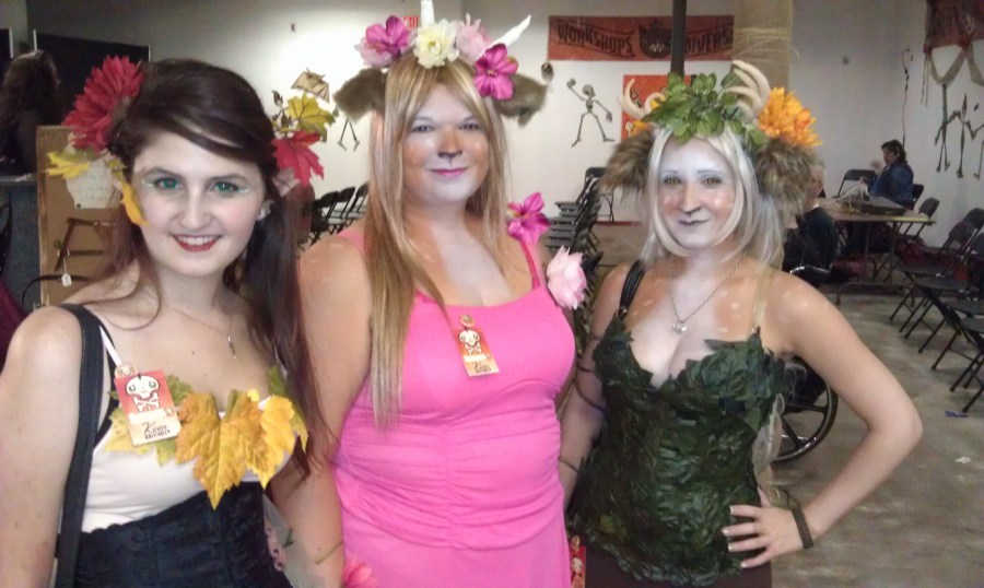 A wood elf and her two faun friends.