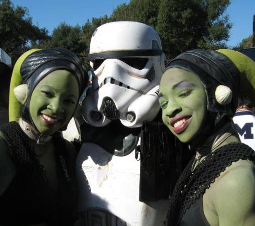 Stormtrooper big pimpin with two Twi-lek Dancers