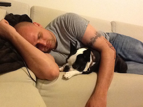 Buddies crashing on the couch