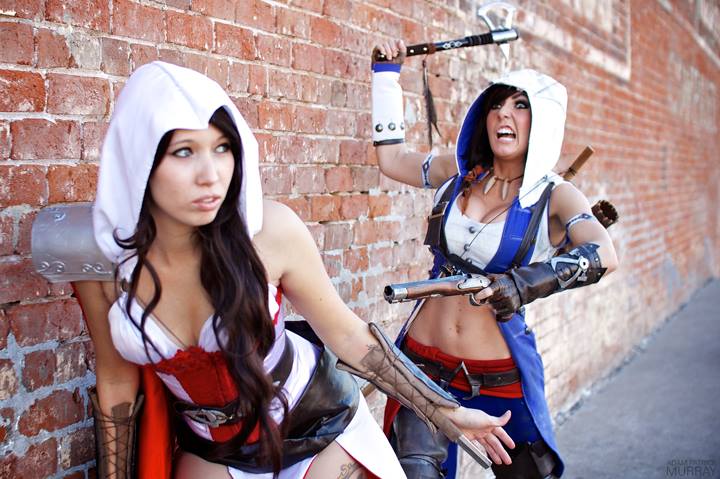 Jessica Nigri using her derp face to sneak up on a victim, ala Assassin’s Creed