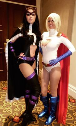 Katy Mor as the Huntress and Cara Nicole as AZ Powergirl