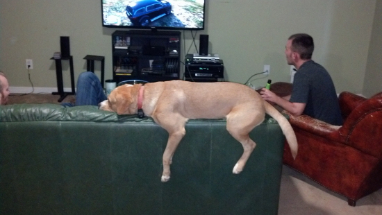 Uh, not the normal way to lay on the couch…
