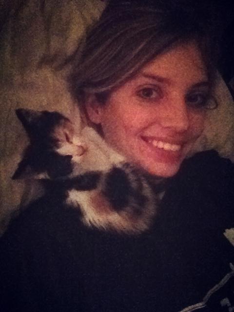 At home with her cat