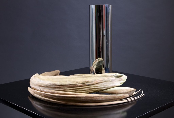 Fast forward to the 21st century where the evolution of Braun’s work has brought us to the Fingerings series, a collection of charcoal dust landscapes and abstracts “painted” using not brushes but her fingertips. Braun has a specific interest in symmetry, as evidenced by the patterns she follows in a number of the Fingerings pieces as well as work in the Symmetrical Procedures collection. Her fingerprints are obvious up close in some of the paintings, though a step back and the grandeur of Braun’s imagination sprawls into a landscape of soft hills, overhanging trees, delicate florals, and a reflective waterway.