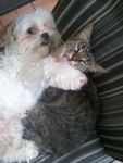 - Dog using cat as a pillow