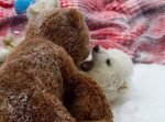 - Playing with his teddy bear