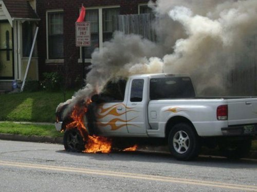 - Taking flames on the front of his pick-up to the extreme