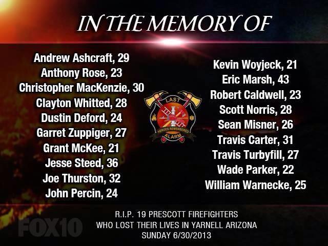 Thoughts and Prayers with the Loved Ones of Lost AZ Fire Fighters